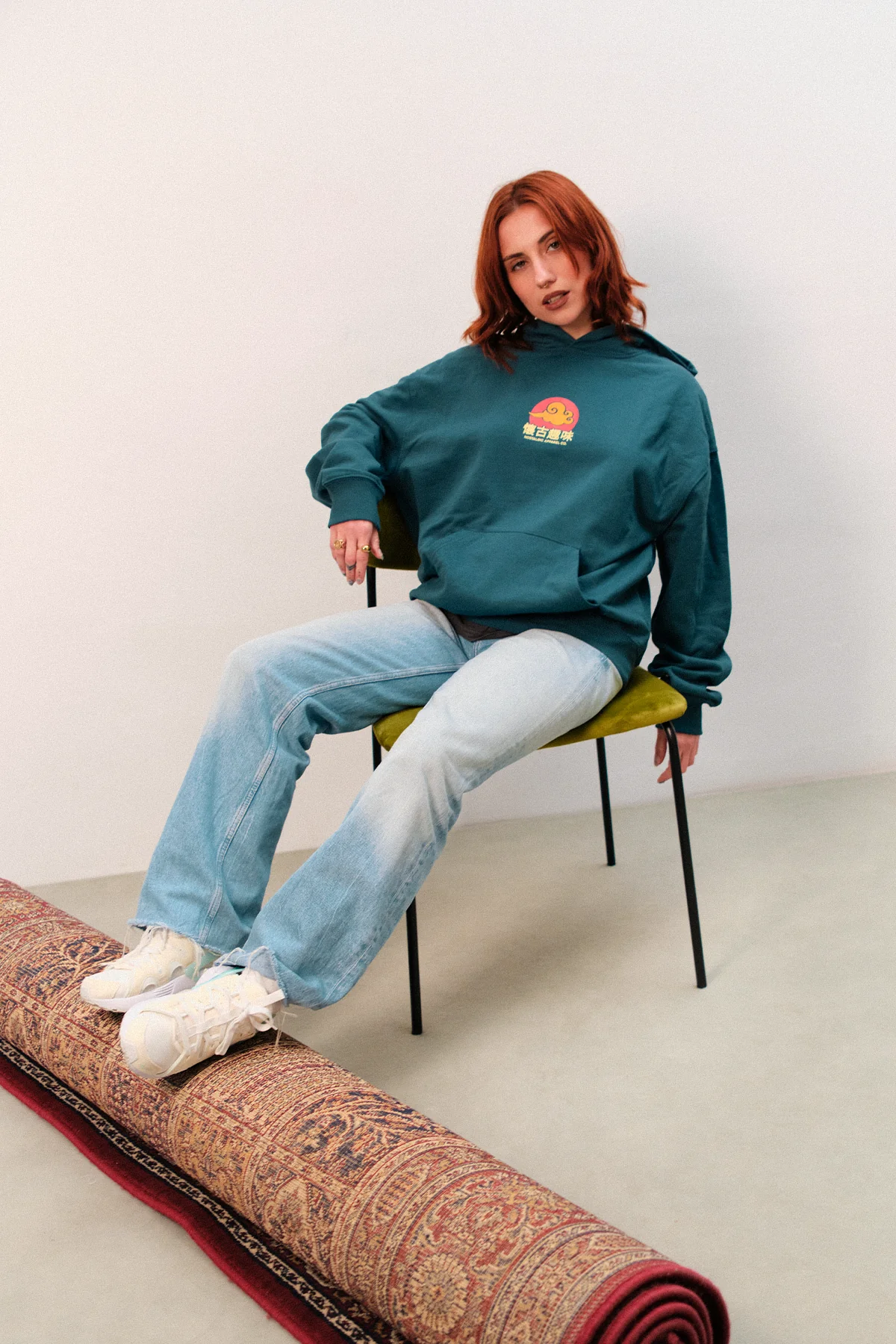 High quality 400G/M² Oversized Hoodie green colour with front and back print.